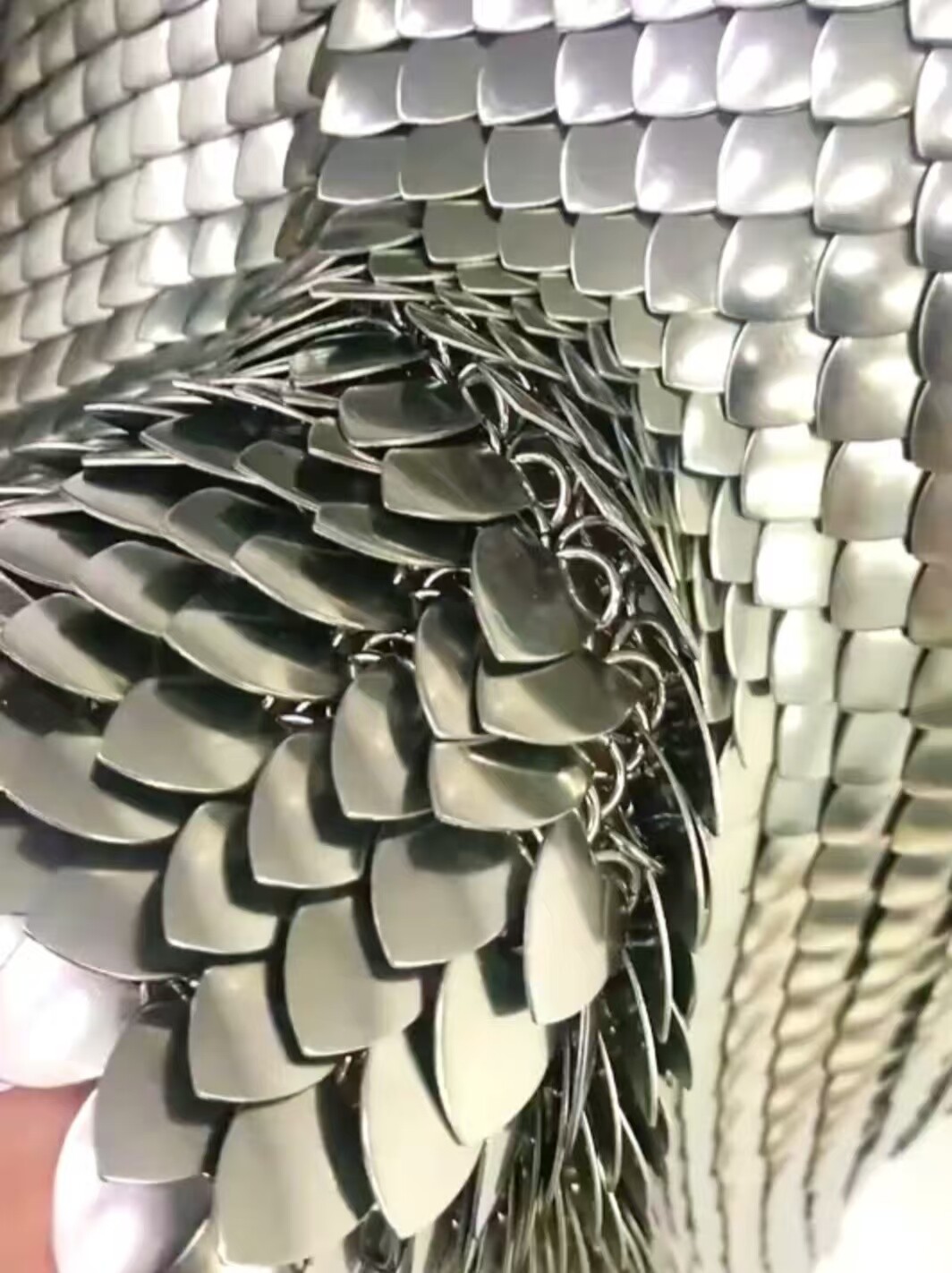 游戏中为了提高鱼鳞甲的盔甲强度,是将鱼鳞甲片缀在链甲上制成的,效果可能如下图: