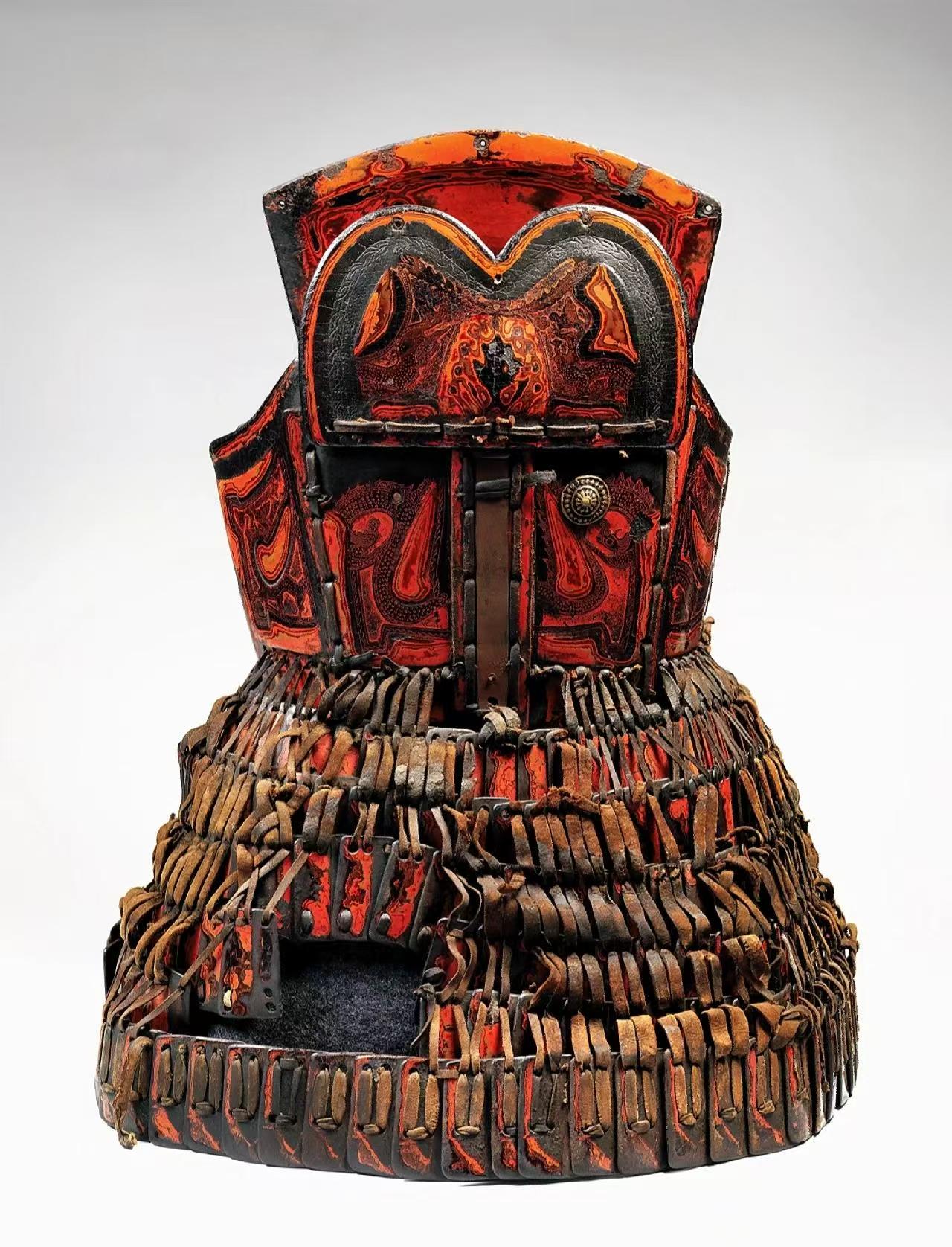 大理国漆皮甲文物,硬化皮革外刷有大漆,起硬化,防潮,装饰等作用: